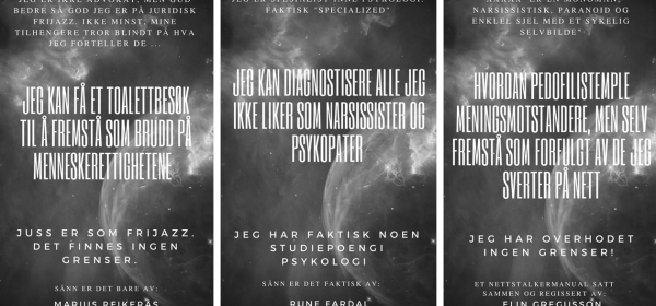 I konspirasjonsmiljøet her hjemme har vi et fargerikt galleri av personligheter som blant annet hevder de er opptatt av menneskerettigheter og rettsikkerhet. Det er jo nobelt,